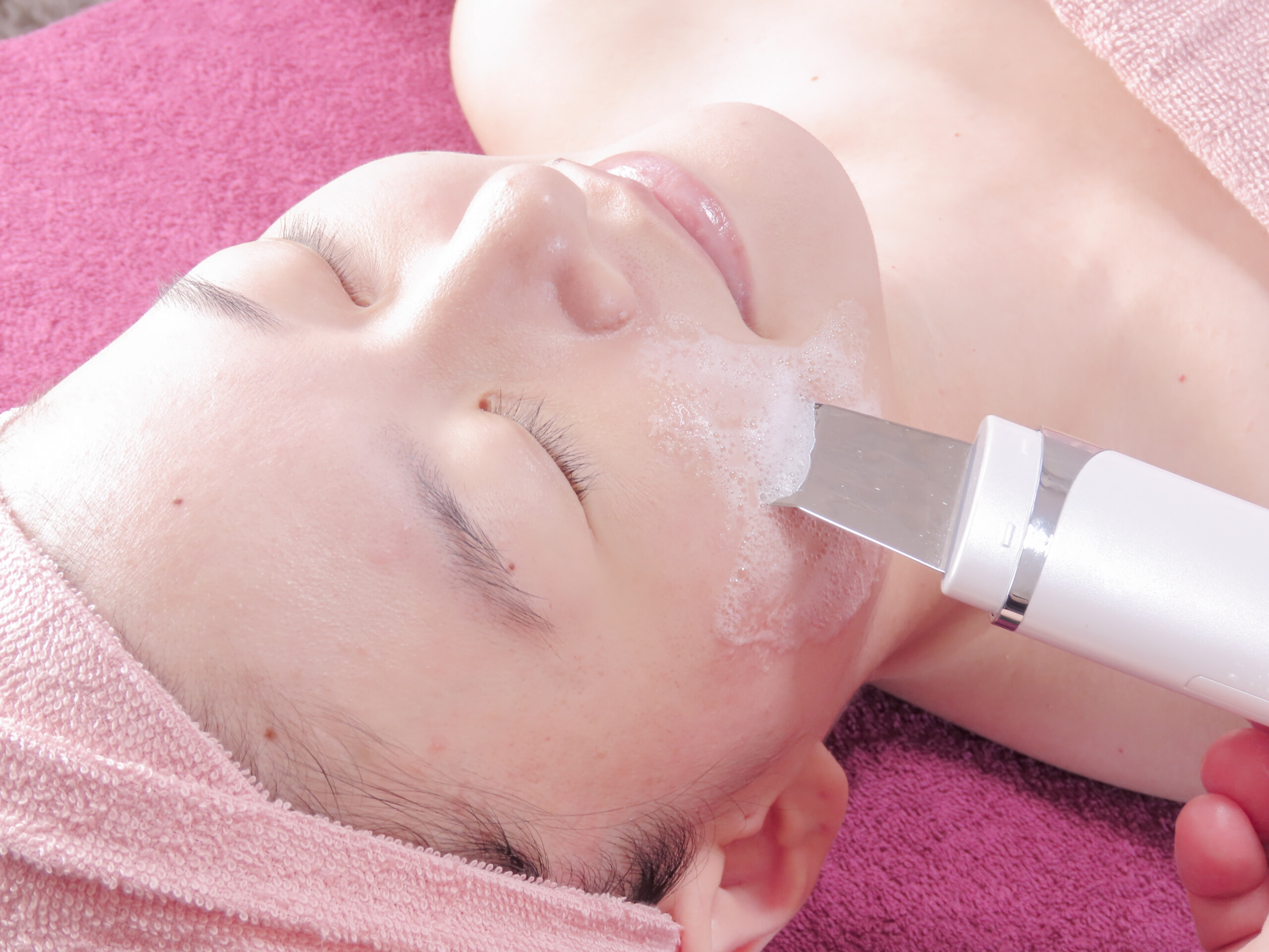 超音波洗浄で毛穴の汚れをクリアにし、フェイスラインをすっきり整えます。